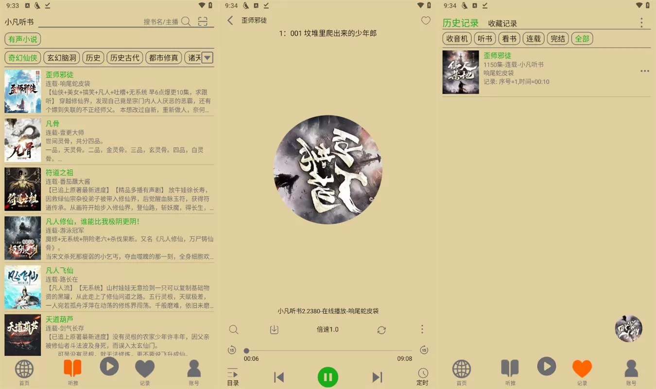 1、【海量书源】:网罗最全的有声书源,不愁没有小说听。