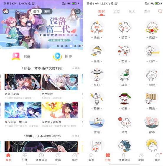 国漫资源底蕴深厚:APP 汇聚超 5 万部高清漫画,不仅手握《斗罗大陆 2 绝世唐门》《风起苍岚》等头部 IP,还有《三眼哮天录》等独家原创作品,更囊括了《诛仙》《遮天》等 2025 年新增的热门 IP 漫改项目。它以 “锐、幻、萌、燃” 分类,覆盖 24 种题材,日更作品准时率达 98.6%,远超行业平均水平,能很好满足国漫爱好者的追更需求。