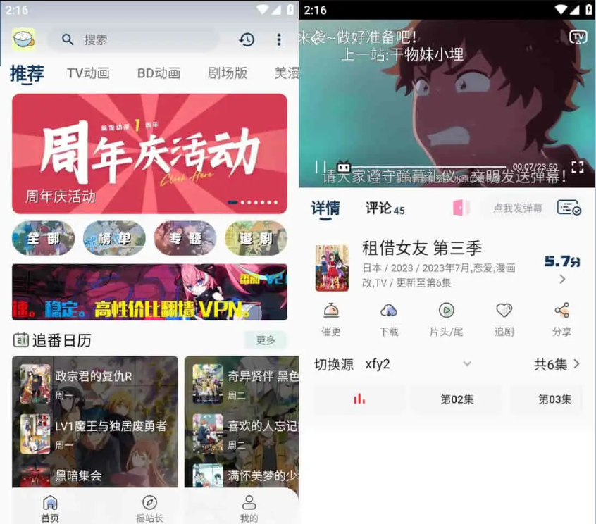 资源丰富且更新高效:APP 覆盖日漫、国漫、美漫等全品类动漫,既囊括《鬼灭之刃》《咒术回战》等头部热门 IP,也收录诸多经典老番与冷门佳作,甚至买断了《进击的巨人》最终季等稀缺资源的全球首发权。其新番更新速度极快,与日本新番更新延迟不超过 15 分钟,还支持更新自动推送,能让用户及时追更。同时支持离线缓存,可满足用户通勤等无网络场景下的观看需求。