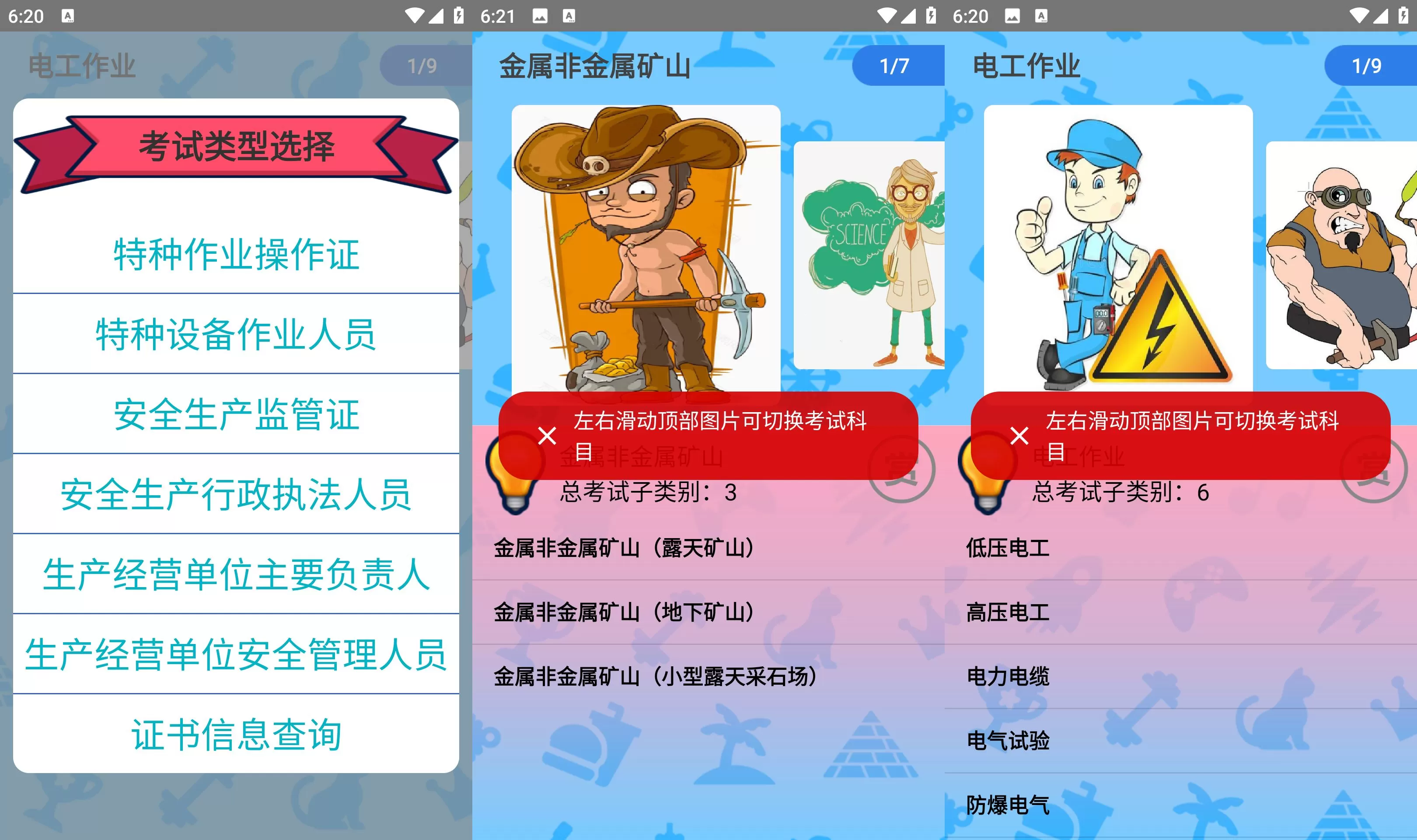 Ⅰ.适用于全国各省市安监局核发的各类特种作业操作证的取证考试练习及模拟,共9类,包括: