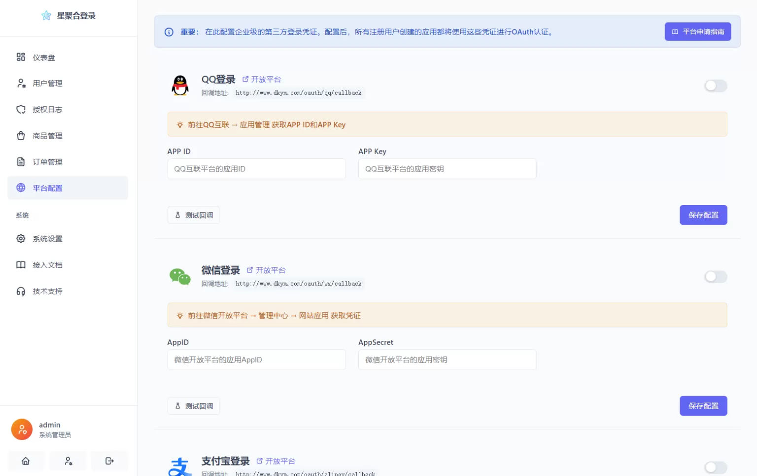 2026全新聚合登录系统源码 一栈式配置全部快捷登录接口