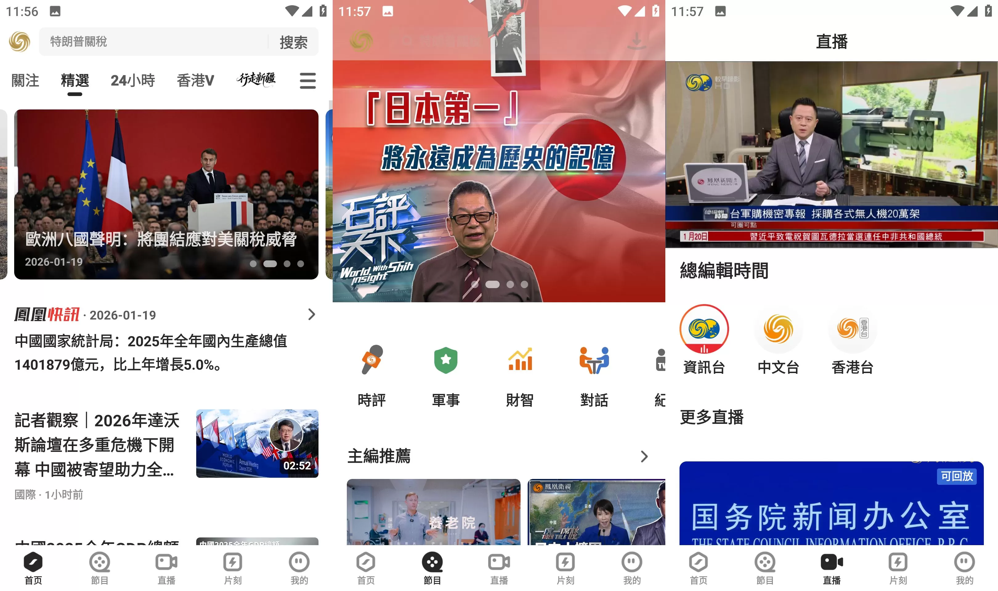 1.鳳凰衛視同步直播 –鳳凰衛視中文台、資訊台、香港台全天候24小時電視精彩內容同步直播。
